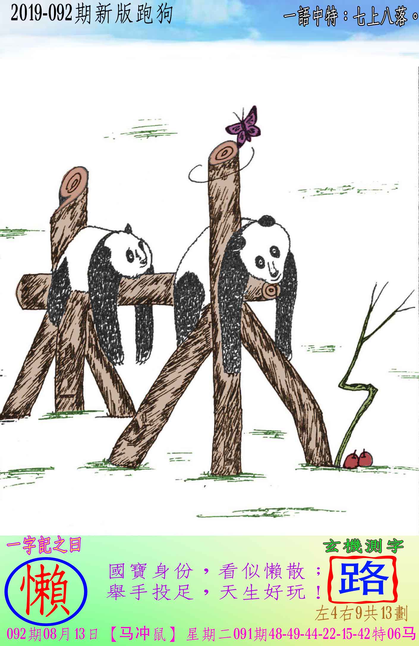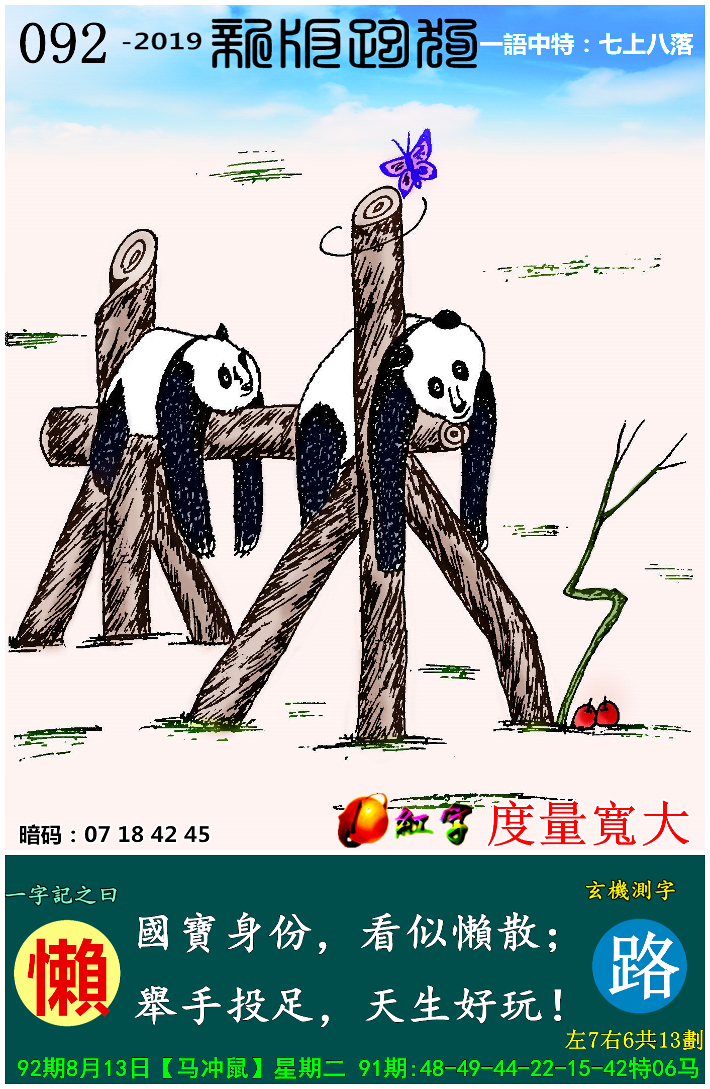 092期新版跑狗一字記之曰:【懶】 國寶身份,看似懶散; 舉手投足,天生好玩!