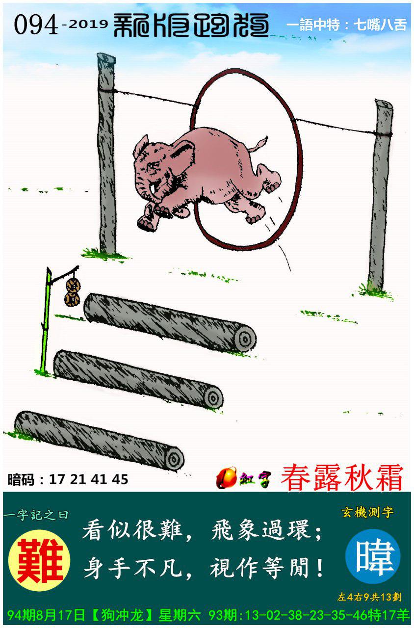094期新版跑狗一字記之曰:【難】