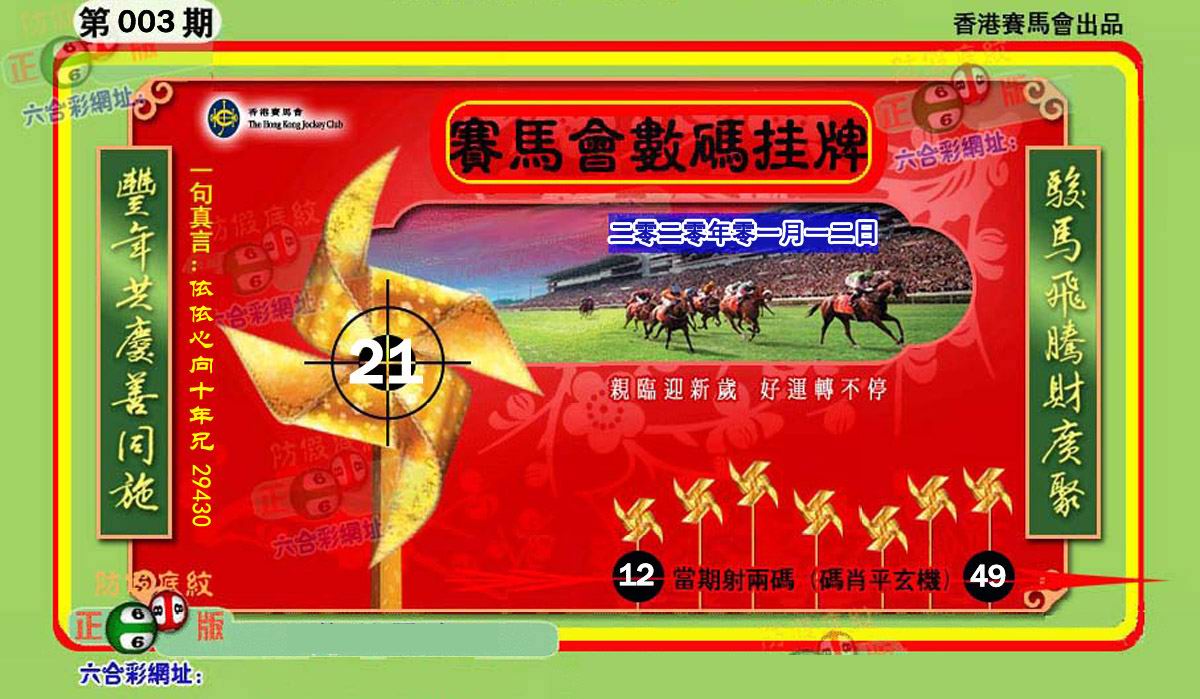 003期开奖时间2020年01月12日(星期日)晚9:30开(农历十二月十八日 虎冲猴)