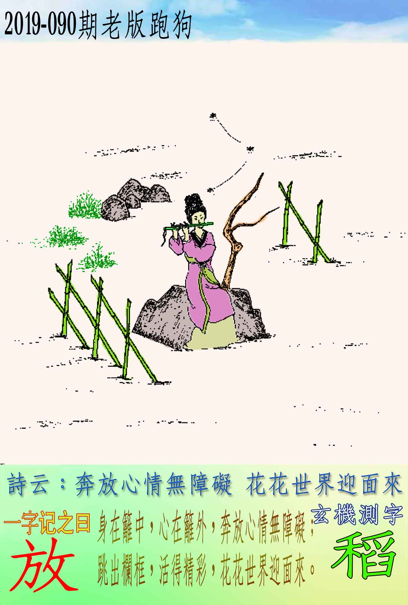 090期老版跑狗一字記之曰:【放】 詩雲:奔放心情無障礙,花花世界迎面來。