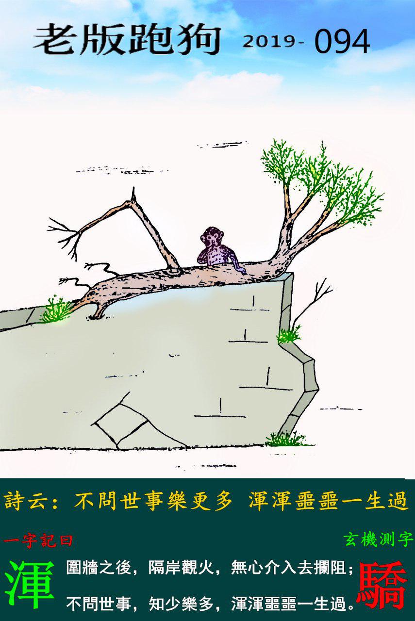 094期老版跑狗一字記之曰:【渾】 詩雲:不問世事樂更多,渾渾噩噩一生過。
