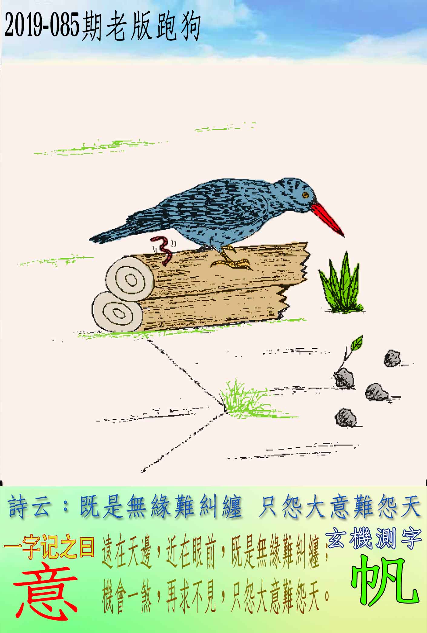 主题 : 085期老版跑狗一字記之曰:【意】 詩雲:既是無緣難糾纏,只怨大意難怨天。 遠在天邊,近在眼前,既是無緣難糾纏; 機會一
