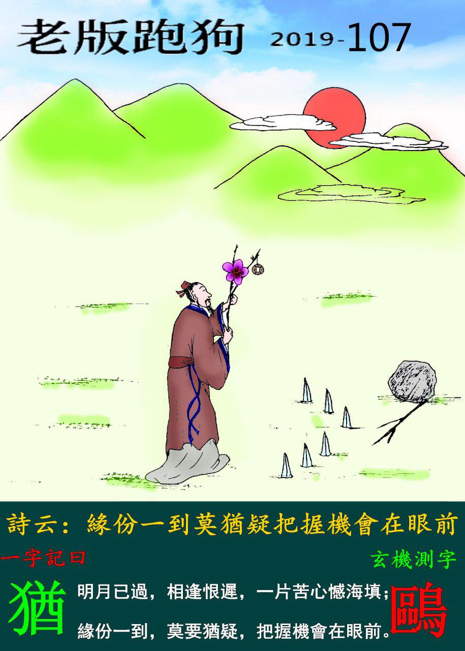 主题 : 107期老版跑狗一字記之曰:【猶】玄機測字:《鷗》