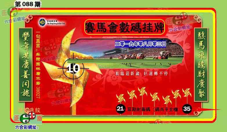 088期开奖时间2019年08月03日(星期六)晚9:30开(农历七月初三 猴冲虎)