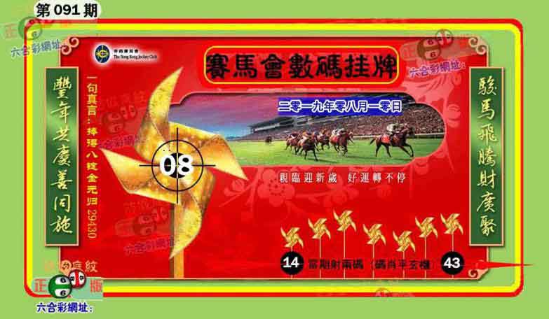 091期开奖时间2019年08月10日(星期六)晚9:30开(农历七月初十 兔冲鸡)